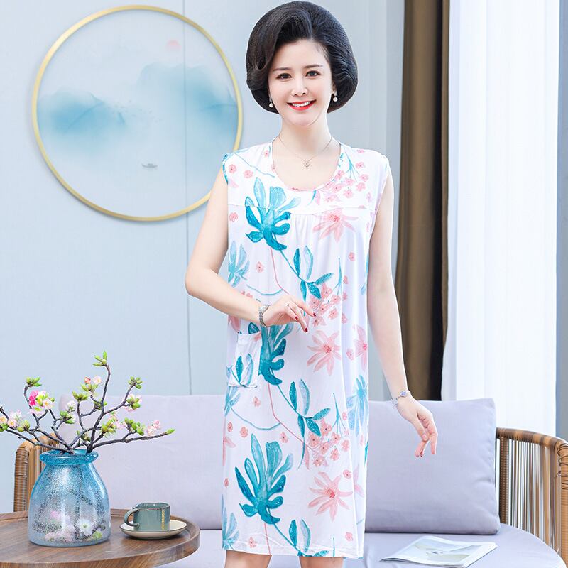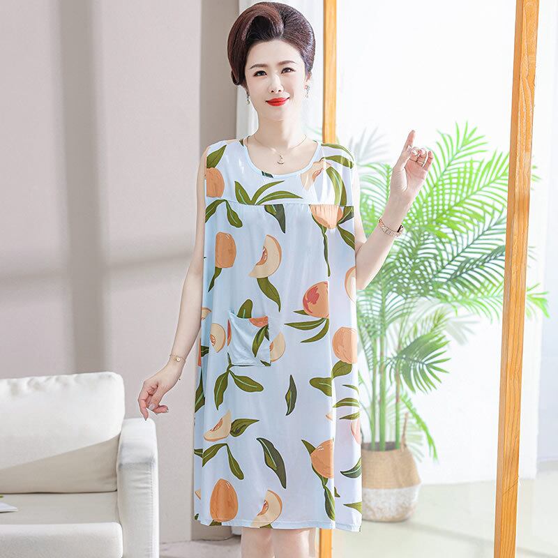 ワンピース レディース ミセス 再生繊維 ルームウェア パジャマ ノースリーブ ロング丈 ミディ丈 薄手 軽量 リラックスウェア ワンマイルウェア カジュアル 春夏 花柄 ピンク系
