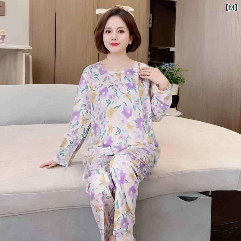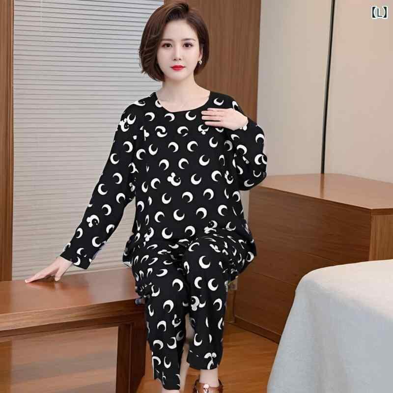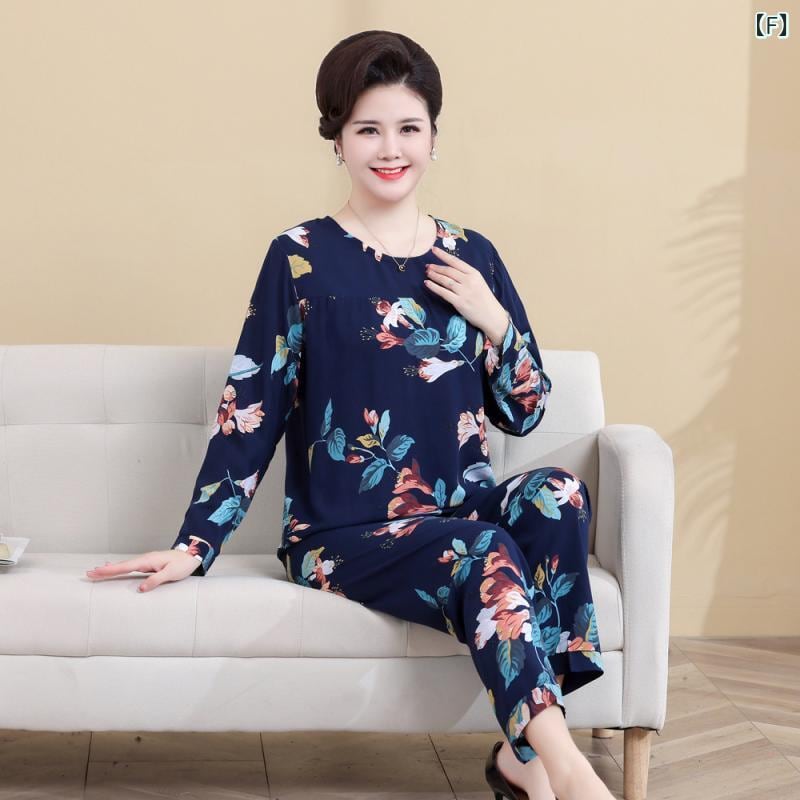 パジャマ レディース ミセス 中高年 祖母 ママ ルームウェア セットアップ 上下セット 長袖 長ズボン 45番手 綿混 再生繊維 薄手 軽やか ラウンドネック 普段使い おうち時間 ワンマイルウェア 春秋 快適 ゆったり