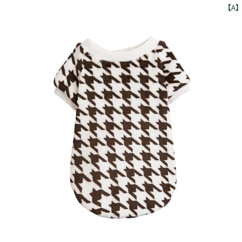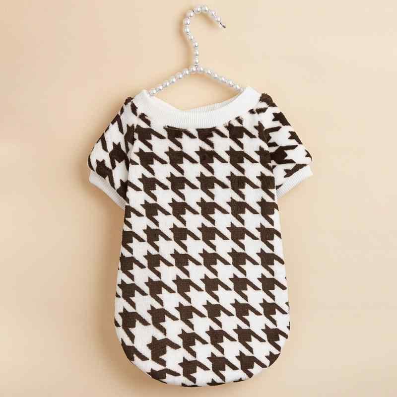 ペットウェア 猫 犬兼用 白系 ブラウン 千鳥格子柄 フリース スウェットシャツ トレーナー 防寒 保温 もこもこ 小型犬 中型犬用 インスタ風 おしゃれ カジュアルウェア