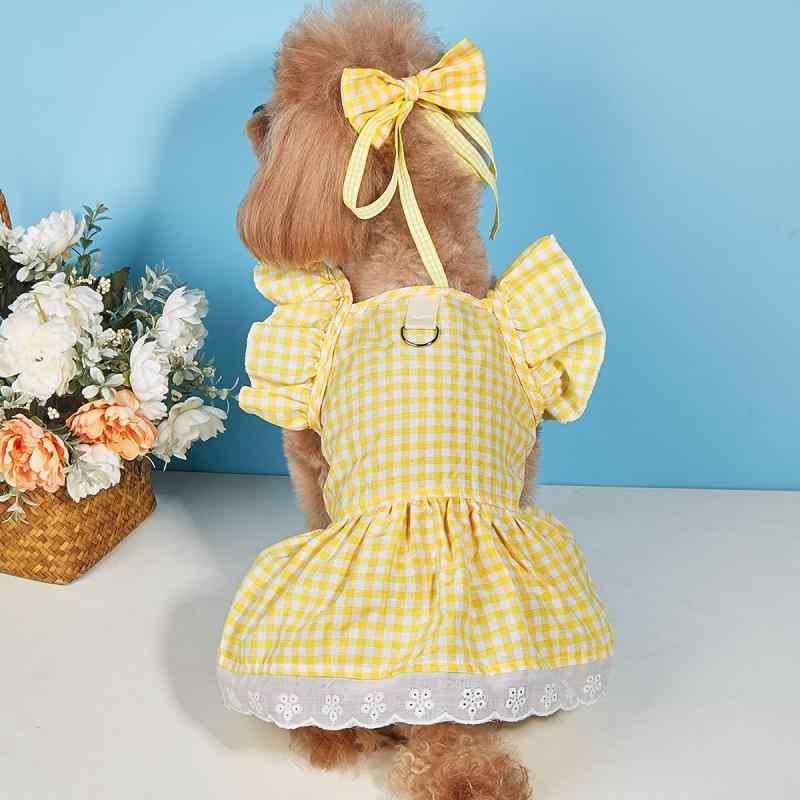 ペット用ワンピース 女の子 フリル袖 ドレス 綿 コットン テディ ビション チワワ 小型犬 猫用 春夏 チェック柄 花柄 お散歩 お出かけ 普段使い 軽量 快適 通気性