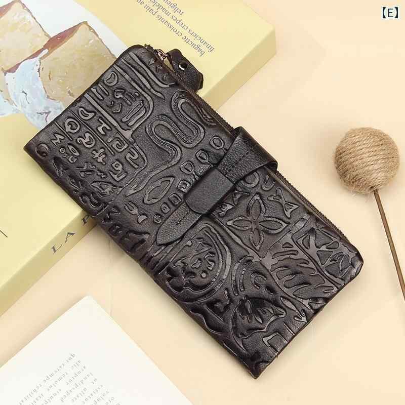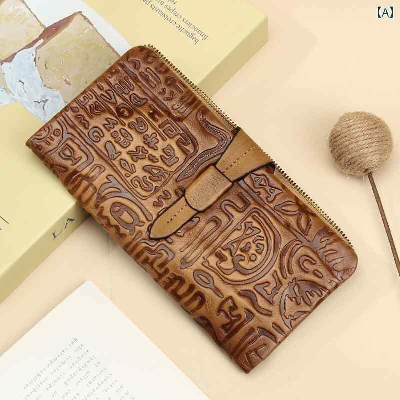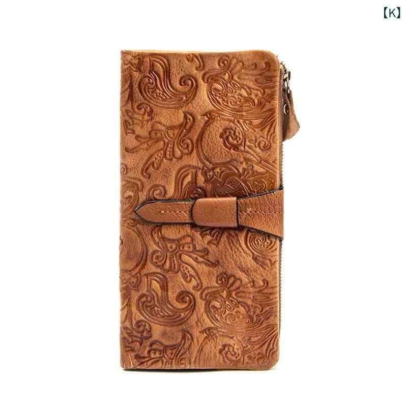 財布 長財布 ロングウォレット クラッチバッグ型 本革 牛革 トップグレインレザー 豚革裏地 レトロ ヴィンテージ クラシック 甲骨文字 型押し エンボス加工 上質感 大容量 収納 普段使い 日常使い