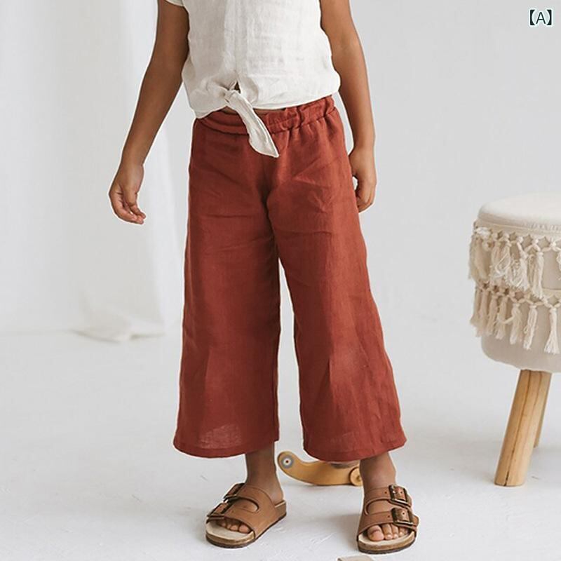 キッズ 男女兼用 綿麻 春夏 ワイドパンツ ゆったり ストレート 無地 ロング丈 かわいい ウエストゴム やわらか素材