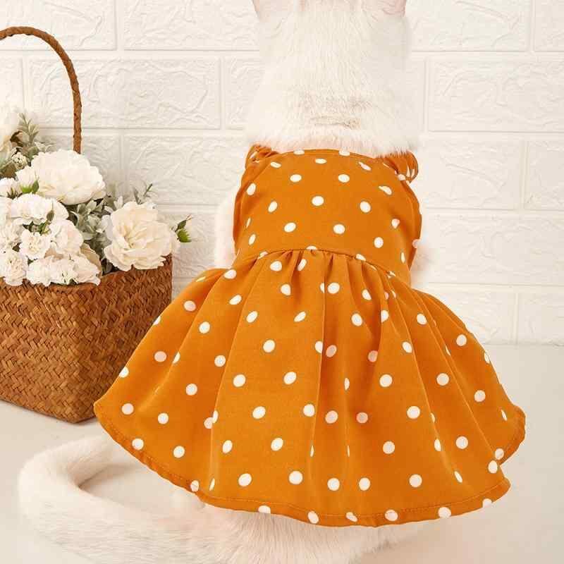 ペットウェア 犬服 猫服 ワンピース ドレス かわいい SNS風 おしゃれ カジュアル ジンジャーイエロー ドット柄 キャミソール ノースリーブ ポリエステル 春夏 お散歩 お出かけ