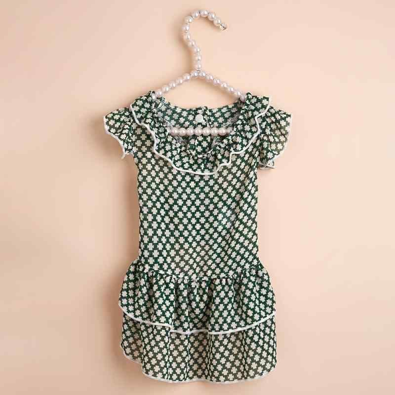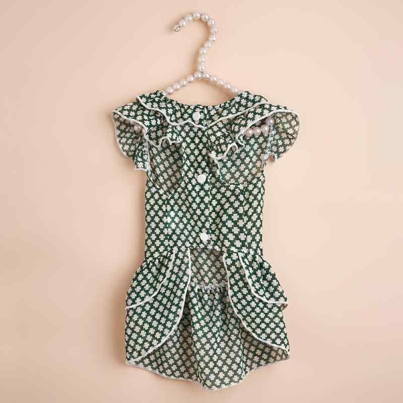 犬猫用 ワンピース インスタ風 チェック柄 かわいい 小型犬 猫 グリーン ポリエステル ギャザー 快適 お散歩 お出かけ