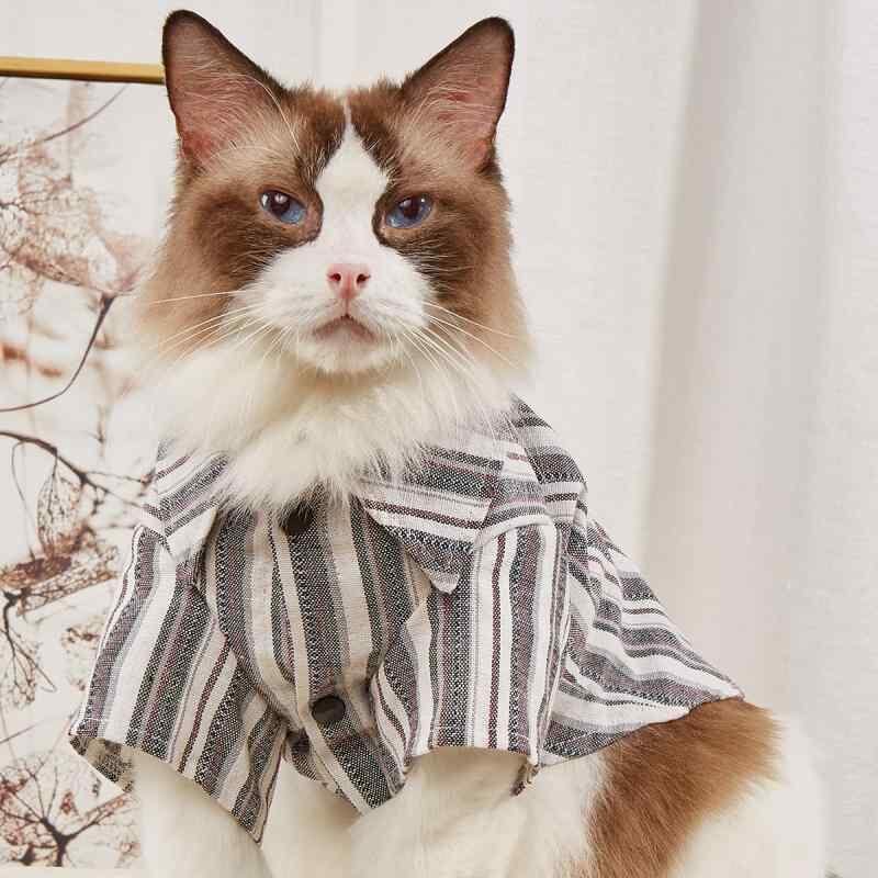 ペット服 シャツ 綿麻 ストライプ柄 かわいい 犬用 猫用 小型犬 中型犬 ドッグウェア キャットウェア ポリエステル 通気性 涼しい おしゃれ カジュアル お散歩 春夏