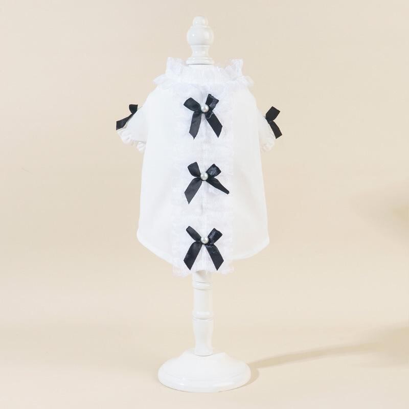 ペット 犬 猫用 ブラウス レース フリル シャツ INS風 蝶ネクタイ付き 上品 コットン 綿 かわいい おしゃれ ドッグウェア キャットウェア お散歩 お出かけ 普段使い