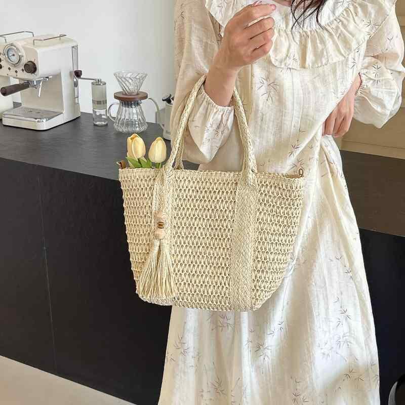 バッグ レディース 大容量 編み込み ストロー素材 ビーチ リゾート ワンショルダー 斜め掛け トート 春夏 オフホワイト ライトブラウン 普段使い 縦型 スクエア ファスナー スマホポケット 中型