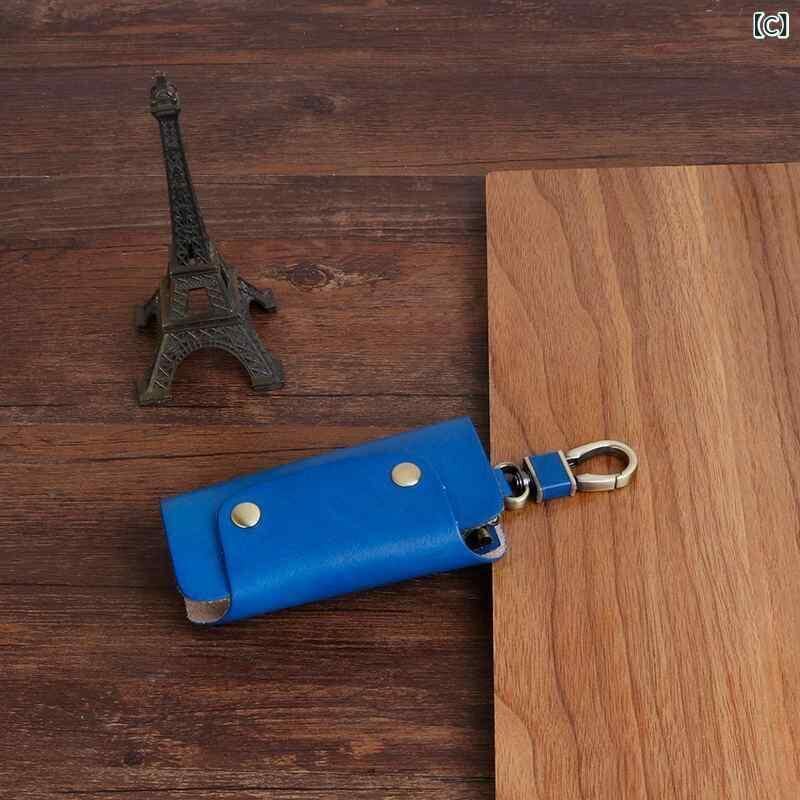 キーケース メンズ レディース 本革 牛革 レトロ クラシック スマートキー対応 車用 携帯用 腰掛け キーホルダー 無地 カジュアル デイリーユース ブラック レッド ブルー グリーン ブラウン