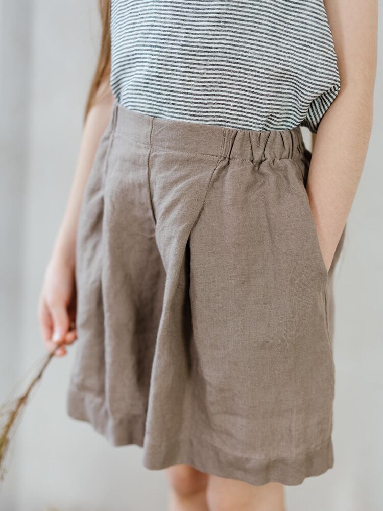 パンツ キッズ ベビー 男女兼用 女の子 男の子 ラミー綿 ショートパンツ ワイド ストレート ルーズ ウエストゴム ナチュラル カジュアル 無地 ソフト加工 夏 グレージュ