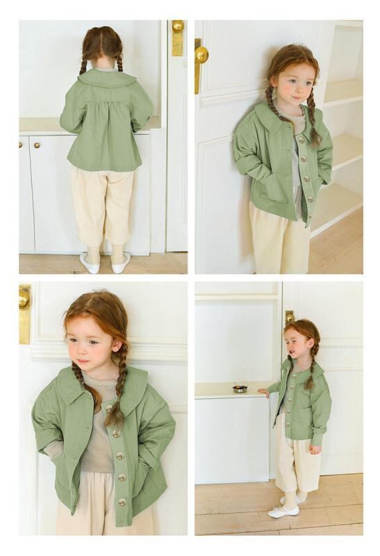 キッズ 女の子 アウター ジャケット カーディガン 長袖 ショート丈 ウォッシュ加工 コットン 綿 無地 襟付き ダブルポケット シングルボタン 防風 かわいい ソフト加工 韓国風 春秋 通園 通学 普段使い 羽織り