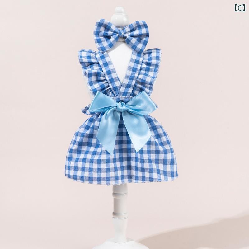 ペット服 犬服 猫服 女の子 プリンセスドレス リボン ワンピース 綿 コットン ポリエステル フォーマル かわいい チェック柄 ドット柄 お散歩 イベント 記念撮影