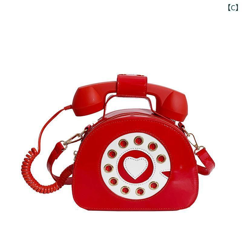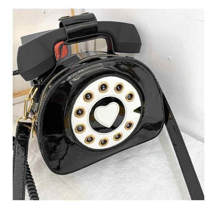 バッグ レディース 電話モチーフ ミニバッグ PUレザー ソフトタイプ ハンドバッグ ショルダーバッグ ファスナー開閉 キュート 個性的 ポップ 普段使い 多色展開