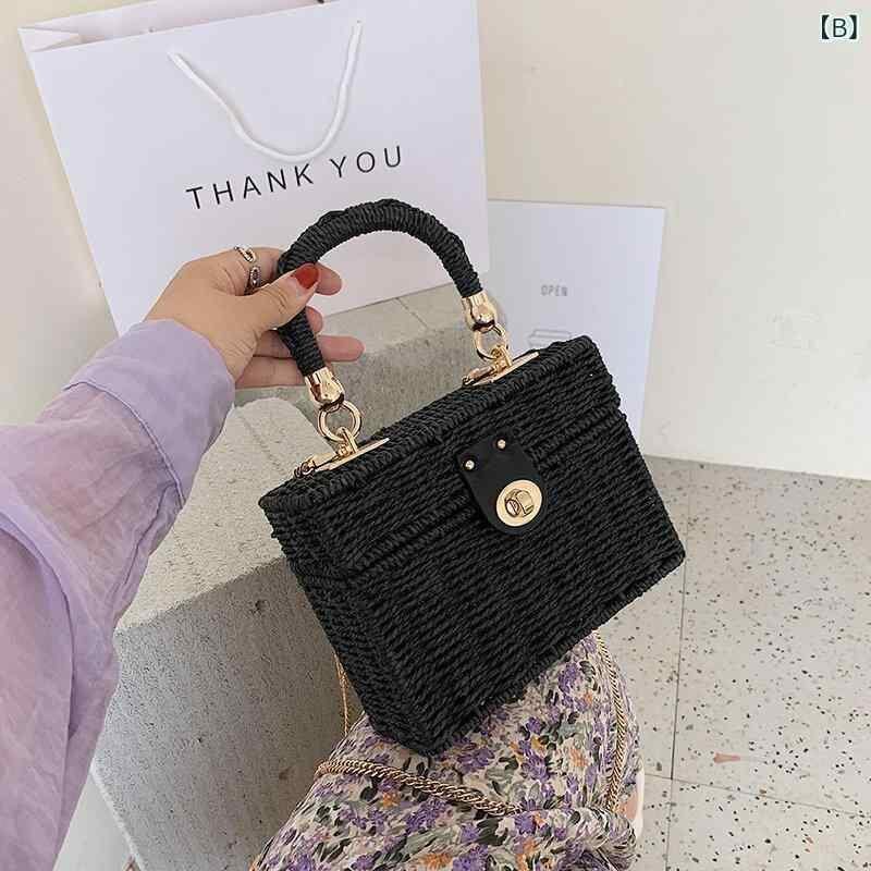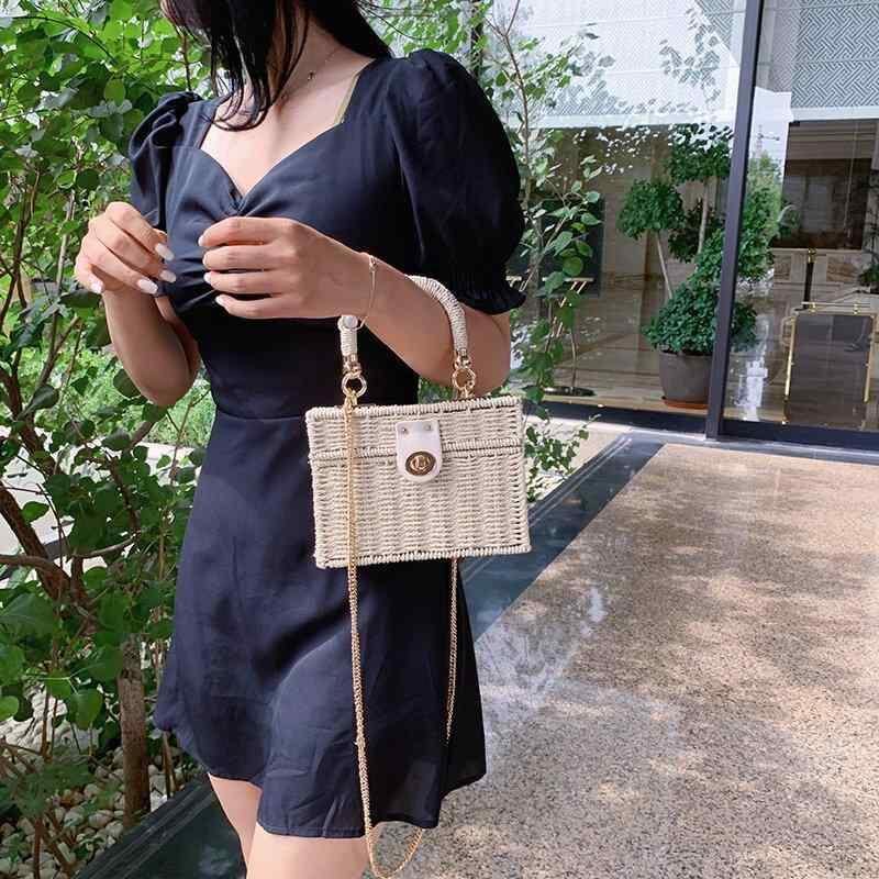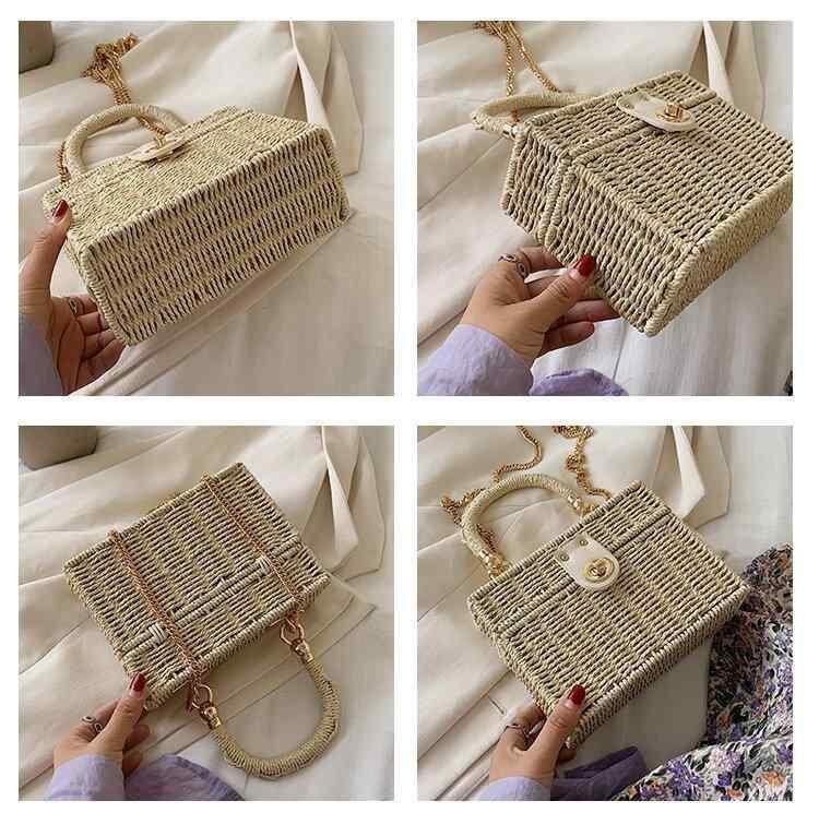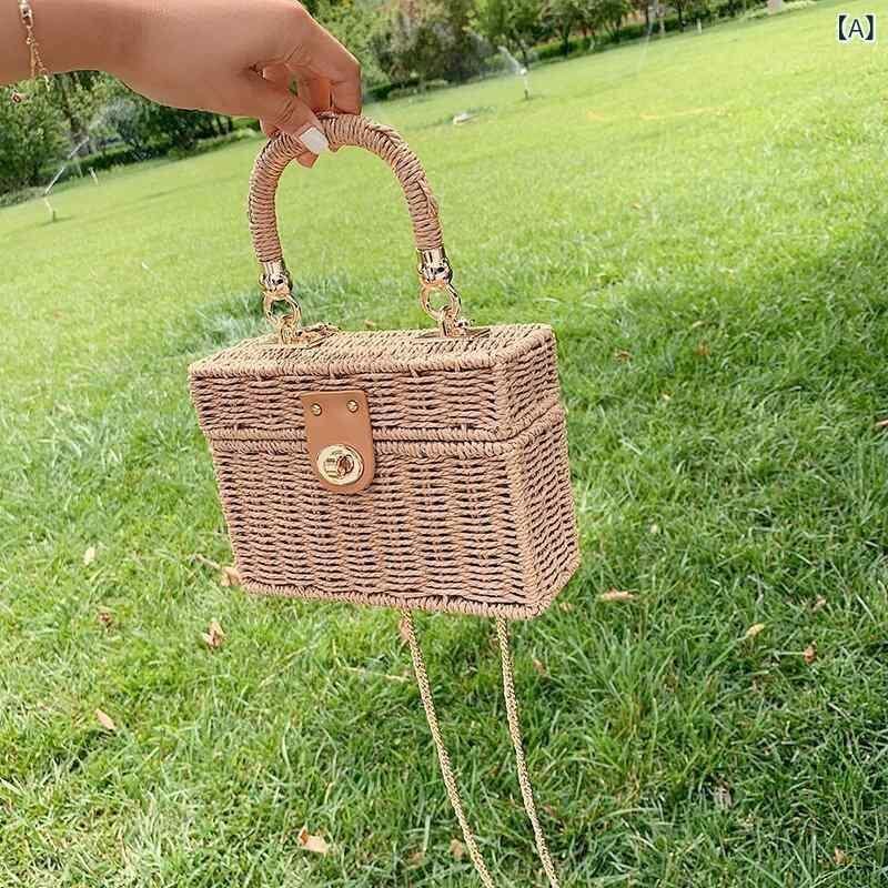 バッグ レディース ストロー素材 編み込み 手提げ ショルダー 斜め掛け 縦型スクエア おしゃれ 韓国風 上品 小型 春夏 カーキ ブラック オフホワイト