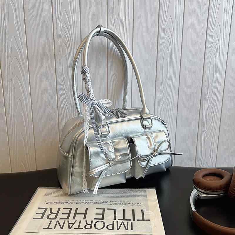 バッグ レディース ショルダーバッグ トートバッグ 春夏 韓国ファッション リボン バレエコアデザイン 大容量 PUレザー 横型 ソフト 普段使い カジュアル 肩掛け鞄 手提げ鞄
