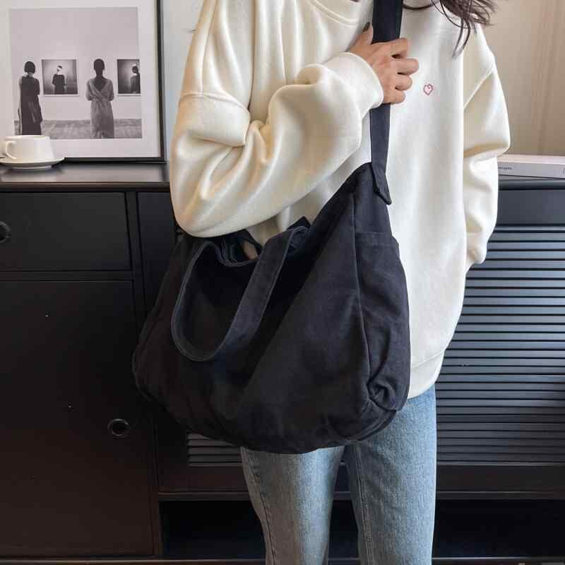 トートバッグ レディース 女性 大容量 手提げ ワンショルダー 肩掛け 斜め掛け キャンバス 帆布 無地 シンプル 横型 スクエア 通学 通勤 学生 デイリーユース ファスナー 内ポケット 外ポケット ソフト素材