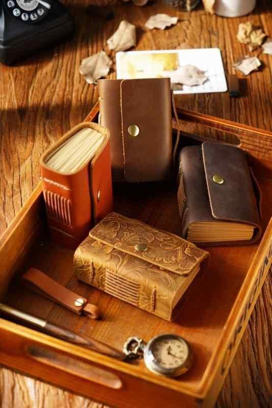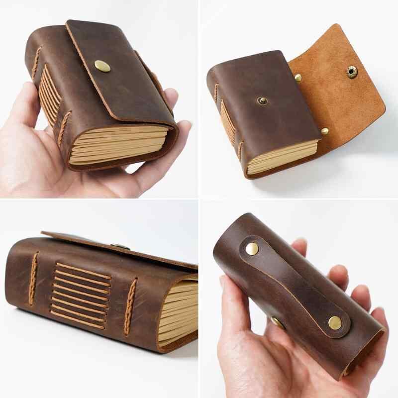 ノート 男女兼用 牛革 レザー クレイジーホースレザー ハンドメイド オリジナル レトロ ヴィンテージ調 小型 ポケット 手帳 日記 スケッチ 記録 高級感 クラフト紙製