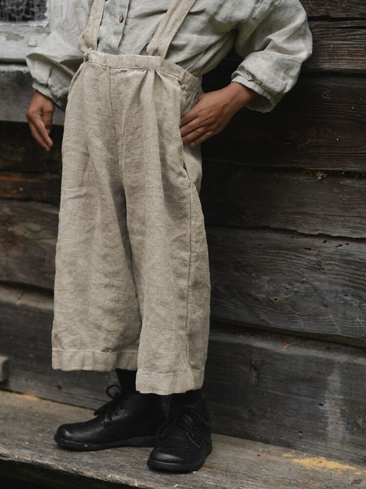キッズ 男の子 女の子 ベビー サロペット オーバーオール 取り外し可能 綿麻 リネンブレンド ストレート ハイウエスト ロングパンツ カジュアル 北欧風 春夏 無地 ベージュ かわいい
