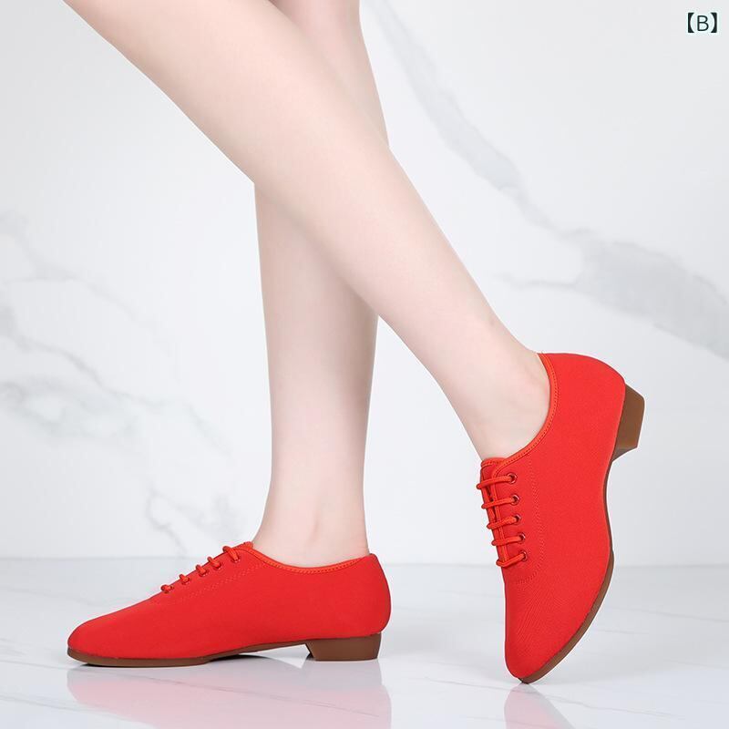 ダンスシューズ レディース オックスフォード生地 屋外用 ゴム底 ラバーソール フラットヒール ローヒール 広場ダンス ママさんダンス フィットネス 体操 軽量 滑り止め 練習靴 黒 赤