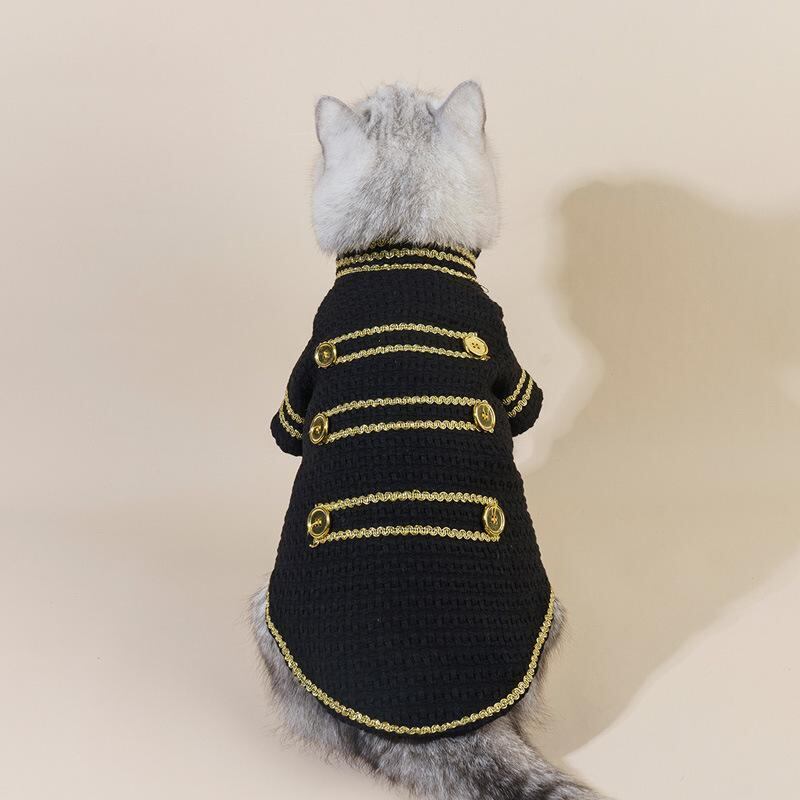 ペットウェア 犬服 猫服 ジャケット ベスト アウター 秋冬 防寒 暖かい おしゃれ かっこいい クール カジュアル ゴールド 金糸 ポリエステル製 小型犬 中型犬 大型犬 散歩 お出かけ用