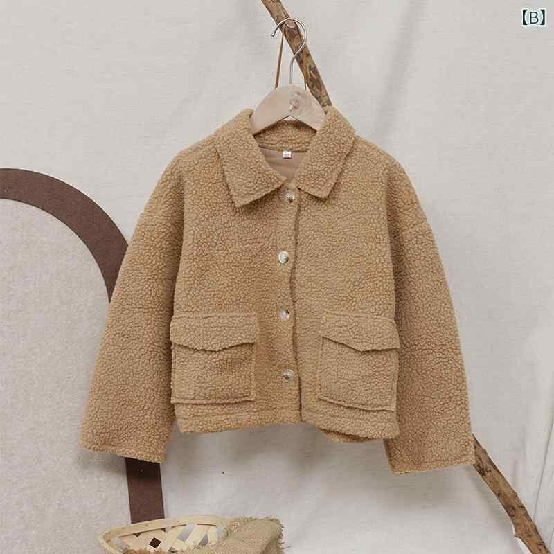 キッズジャケット 男女兼用 ボア 綿100% 襟付き 長袖 前開き シングルボタン ミドル丈 柔らか 秋冬 小学生 園児 普段着 通園 通学 カジュアル ブラウン アイボリー