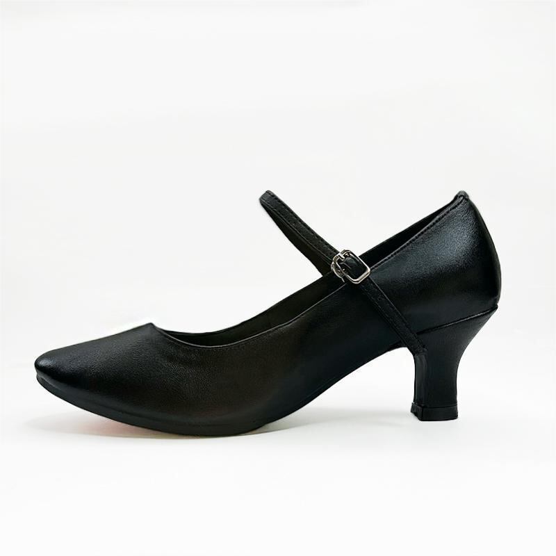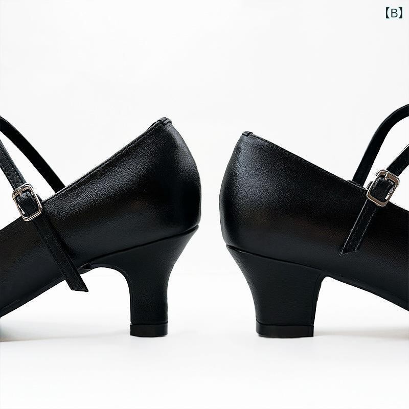 ダンスシューズ レディース 女性用 大人用 本革 ラテンダンス 社交ダンス 練習用 ミドルヒール ソフトソール ゴム底 フィットネス ラウンドトゥ ブラック