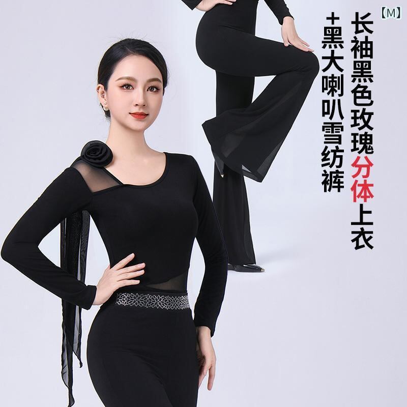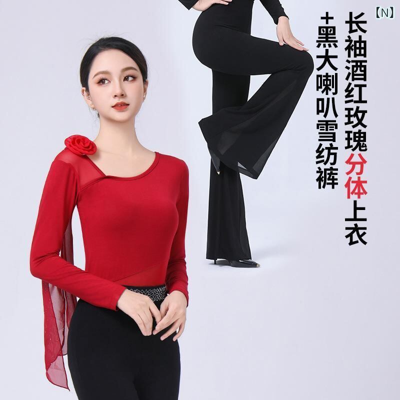 ダンスウェア レディース モダール セットアップ 練習着 レッスンウェア ハイウエスト フレアパンツ 春夏秋 舞台 ステージ衣装 ヨガ フィットネス エクササイズ