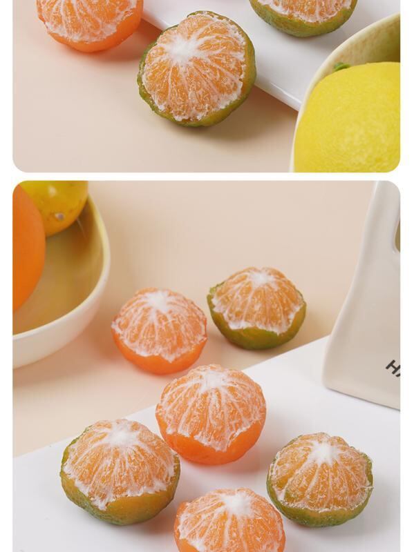 フェイクフルーツ リアル剥皮みかん おもちゃ 1:1スケール インフルエンサー 撮影 写生 デッサン 小道具 ディスプレイ インテリア 飾り 青みかん フルーツ 柑橘 緑色 オレンジ色 PVC素材