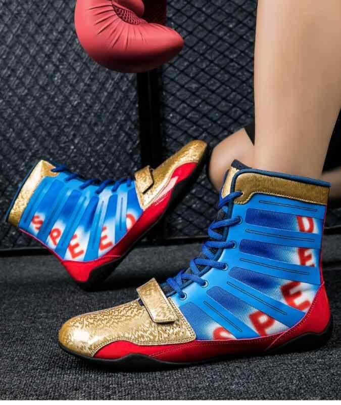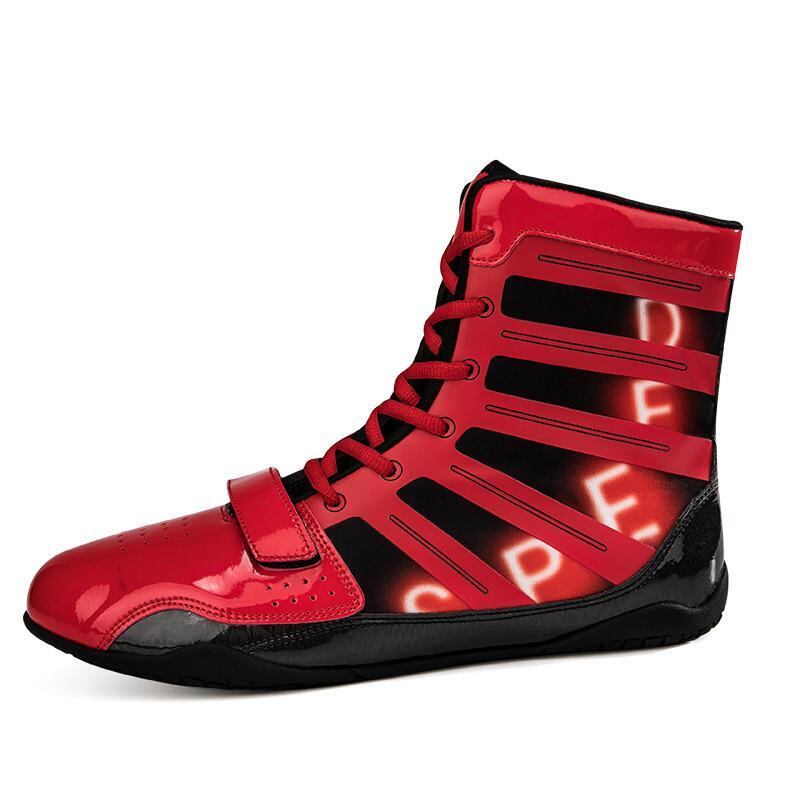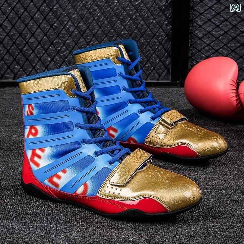 ボクシングシューズ 男女兼用 大きいサイズ 格闘技 武術 トレーニング靴 練習用 競技用 試合用 衝撃吸収 クッション性 通気性 メッシュ ハイカット レースアップ 合成皮革 滑り止め ゴム底 無地