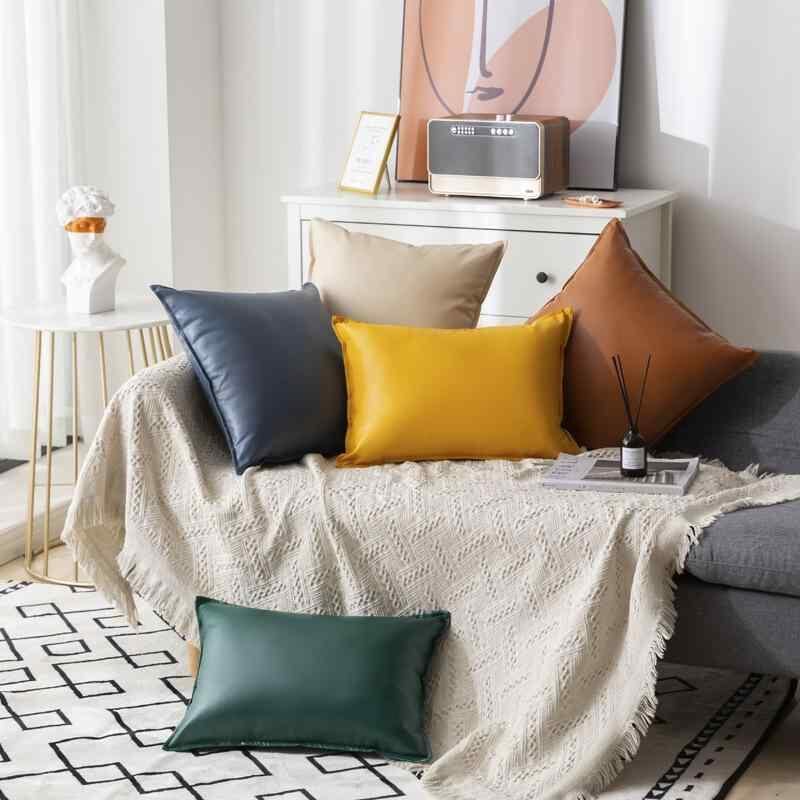 クッション PUレザー シンプル モダン 無地 ソファ リビング 車 抱き枕カバー 抱き枕 高級感 インテリア キャラメル ゴールデンイエロー オフホワイト ミルクティー グレー フォレストグリーン スモーキーブルー