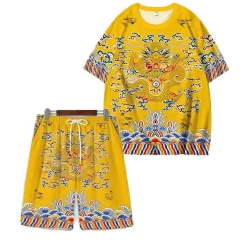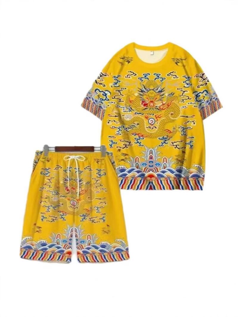 Tシャツ ショートパンツ セットアップ メンズ 3D 龍柄プリント 速乾 吸湿速乾 ポリエステル カジュアル 普段使い 部屋着 スポーツ 春夏 イエロー