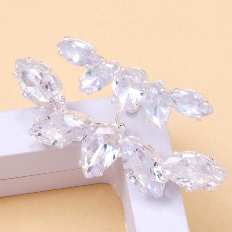 リップカフ レディース ノンホール フェイクピアス ラインストーン リーフ 葉っぱモチーフ 銅製 電気メッキ加工 ゴールド シルバー ストリート ファッション パーティー 欧米風アクセサリー