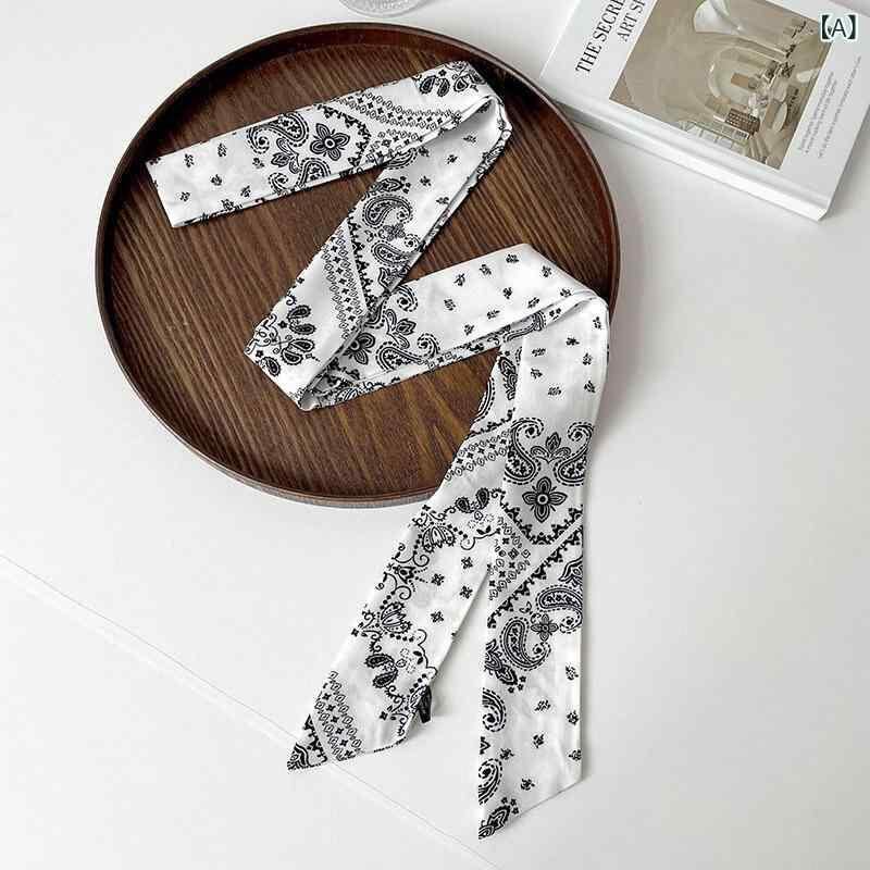 スカーフ レディース 細め 細長 ロング 薄手 ペイズリー柄 プリント柄 多機能 万能 普段使い カジュアル ヘアアレンジ 髪飾り ヘッドバンド ヘアバンド バッグチャーム 春夏 ポリエステル