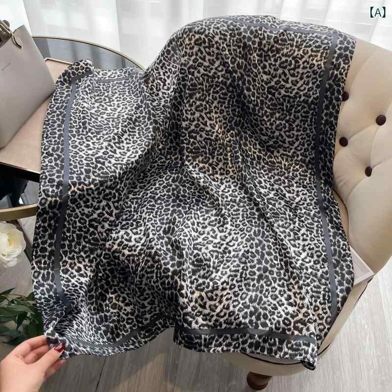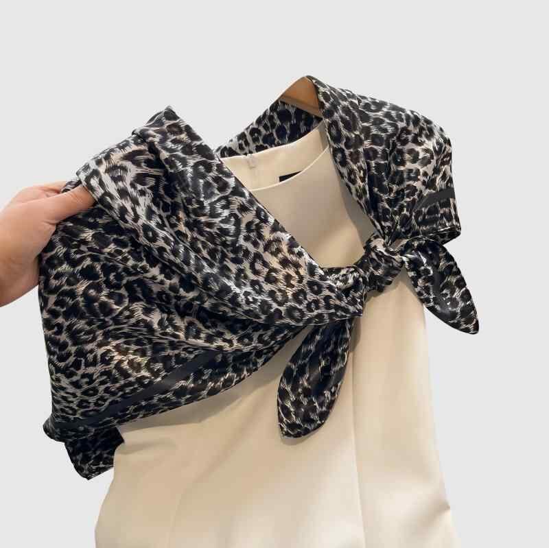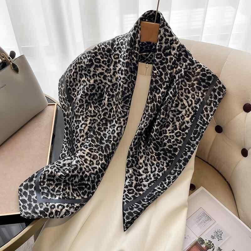 スカーフ レディース 女性用 再生繊維 サテン ヒョウ柄 プリント柄 大判 スクエア 春夏 通勤 オフィス カジュアル ファッション 小物