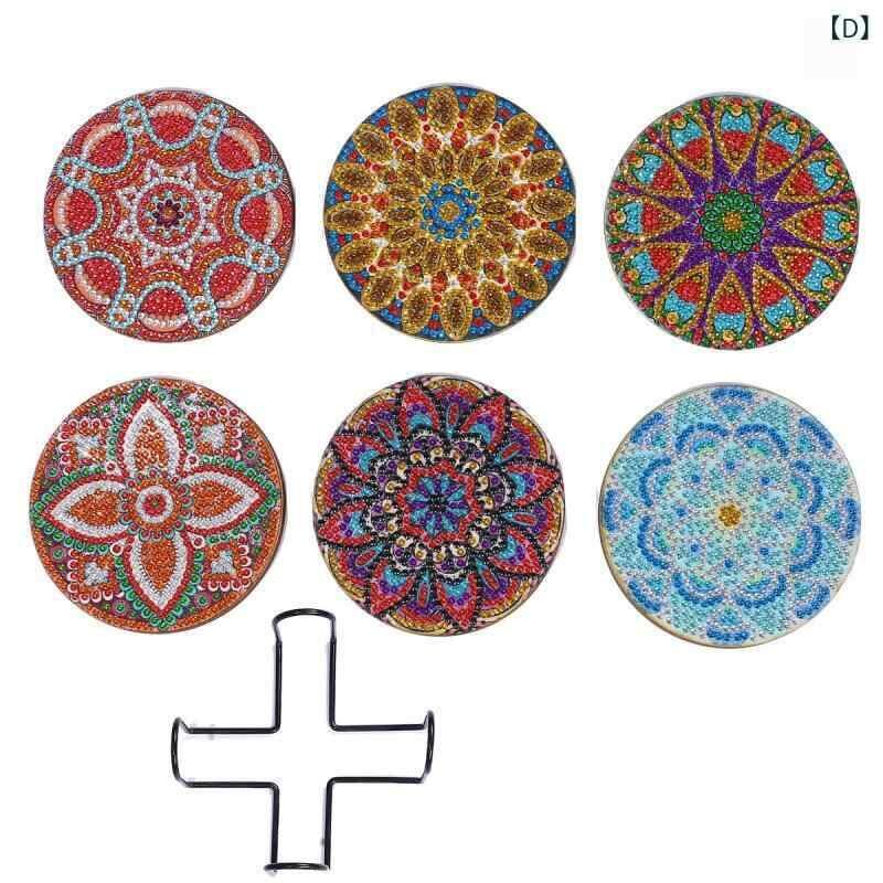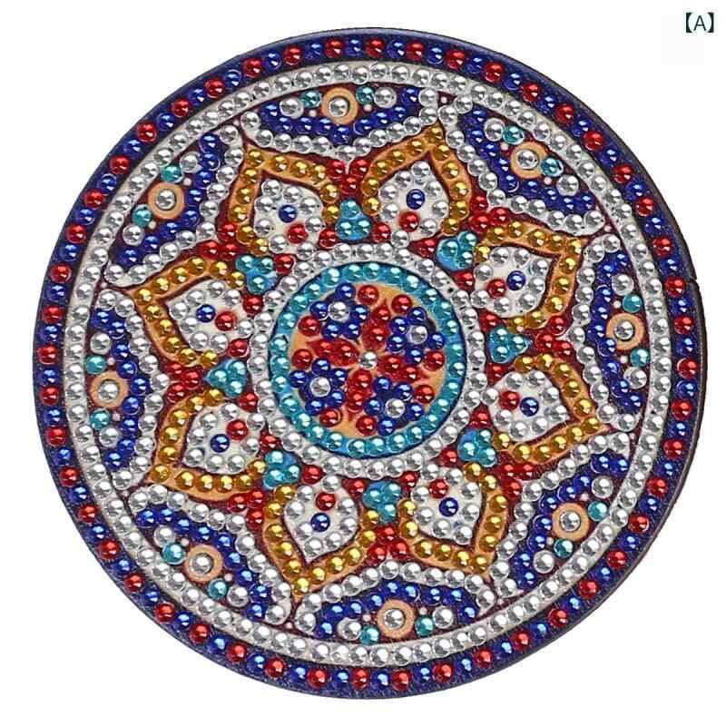ダイヤモンドアート コースター DIYキット 手作り ボヘミアン ひまわり マンダラ 海 猫 犬 アニマル柄 スタンド付き モダン おしゃれ リビング インテリア 雑貨