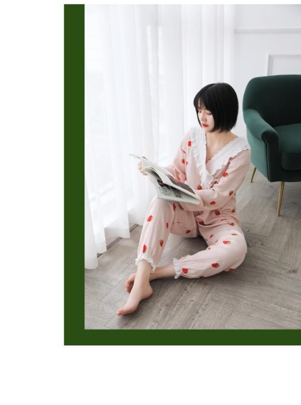 マタニティ レディース 授乳服 パジャマ ルームウェア 上下セット 春夏 夏用 綿クレープ 薄手 通気性 快適 Vネック 長袖 ロングパンツ 産後 妊婦用 授乳口付き 花柄 ストロベリー リーフ デザイン