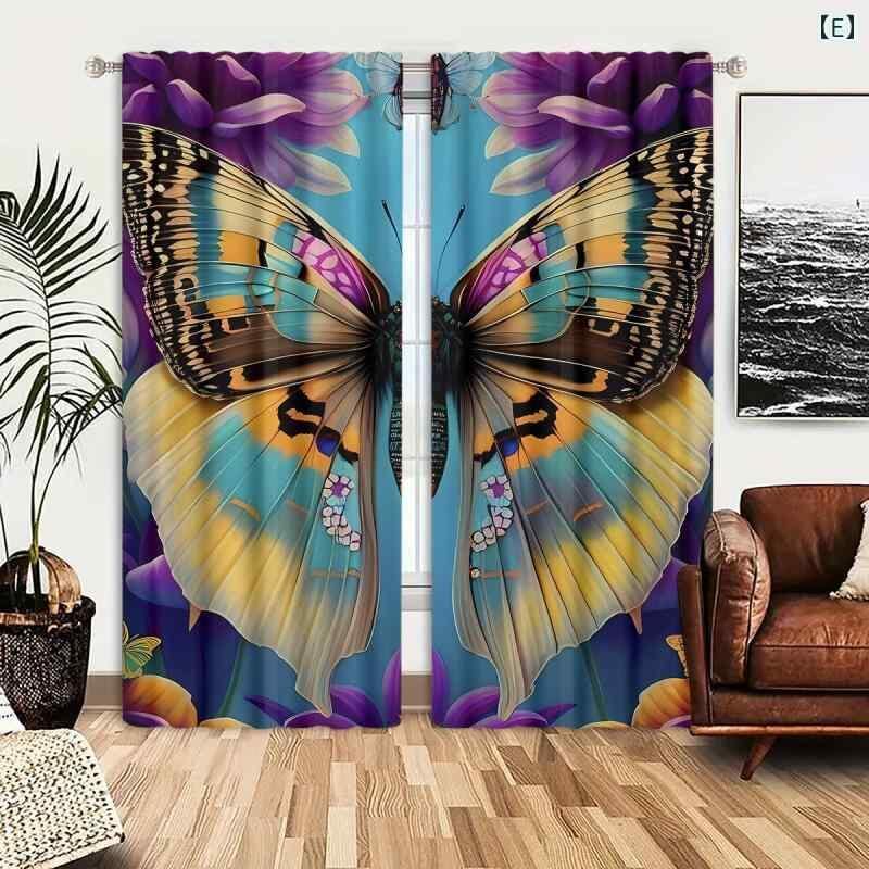 カーテン ポリエステル 防水 防カビ 遮光 蝶柄 カラフル おしゃれ モダン ハトメ 寝室 リビング オフィス キッチン 書斎 装飾 目隠し