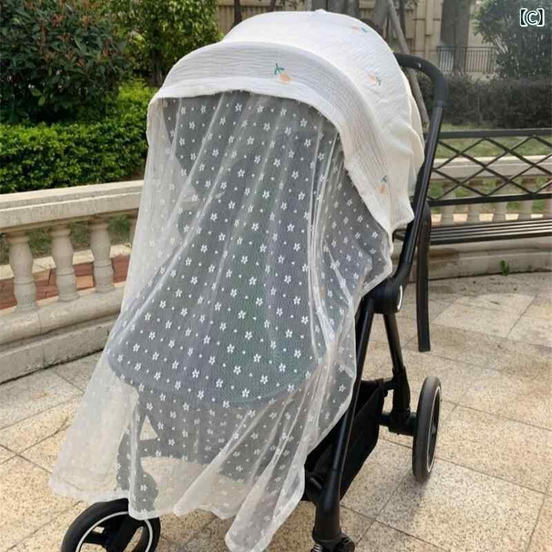 蚊帳 ベビー ベビーカー 用 フルカバー 日よけ 遮光 虫よけ 風よけ 汎用タイプ お出かけ カバー さくらんぼ オリーブ くま 刺繡デザイン 春夏