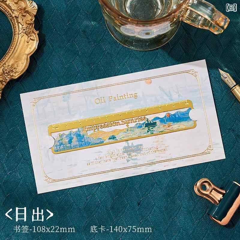 しおり 定規 金属製 ブックマーク 透かし彫り 油絵デザイン 印象派アート 名画モチーフ 高級感 文房具 学生 オフィス 読書 勉強