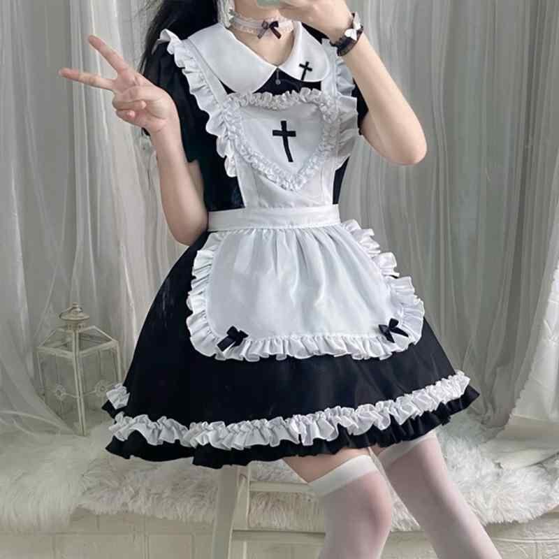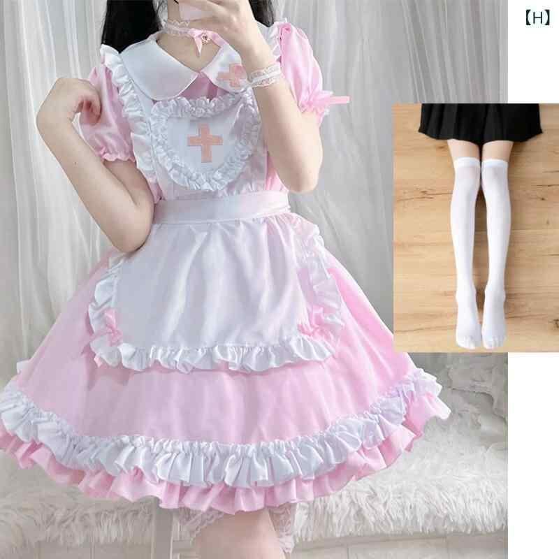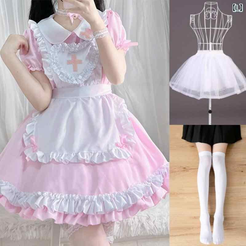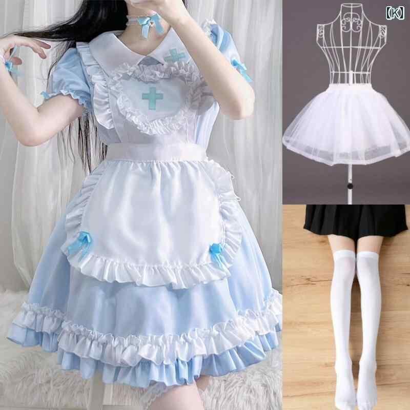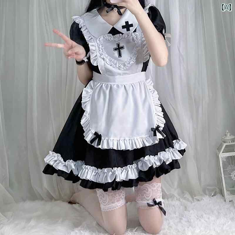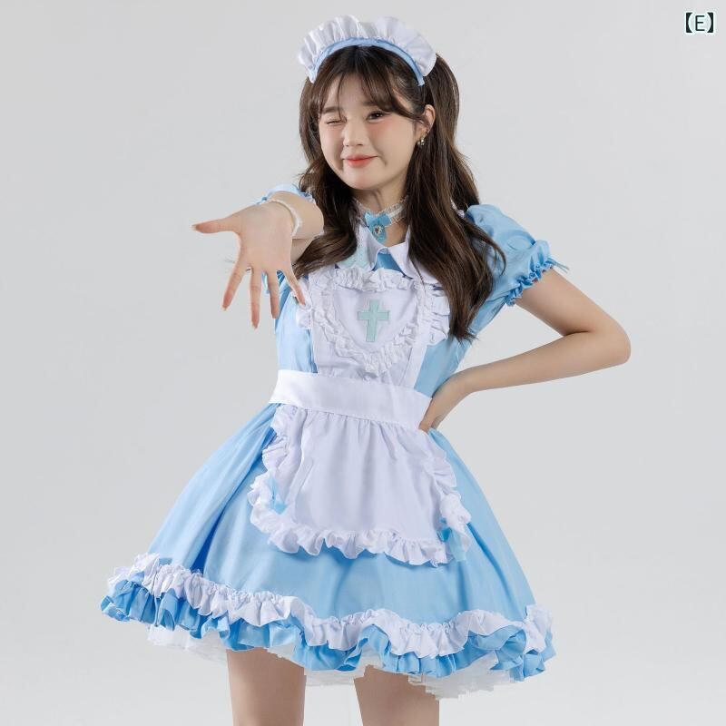 メイド服 レディース 半袖 かわいい 日系 クラシカル コスプレ ワンピース 仮装 イベント アニメ ゲーム フリル 甘め ポリエステル Aライン 黒 ブルー ピンク レッド 春夏