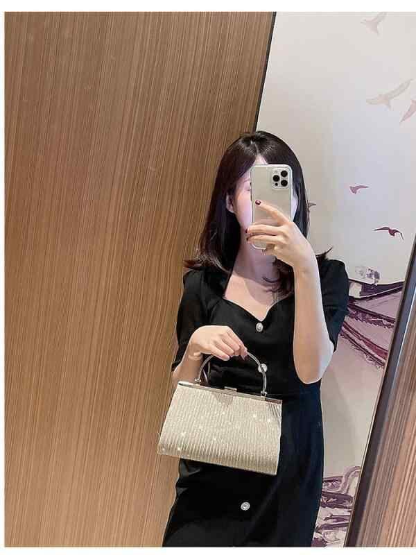クラッチバッグ レディース スパンコール プリーツ がま口 トップハンドル 手提げ パーティー 結婚式 二次会 フォーマル イブニング スクエア型 チェーン 華やか エレガント 上品