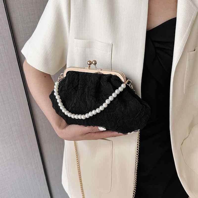 バッグ レディース ミニ 口金 シェル型 レース チャイナドレス風 高級感 ハンドバッグ ナイロン 斜め掛け 手持ち ロック金具 個性的な 春夏