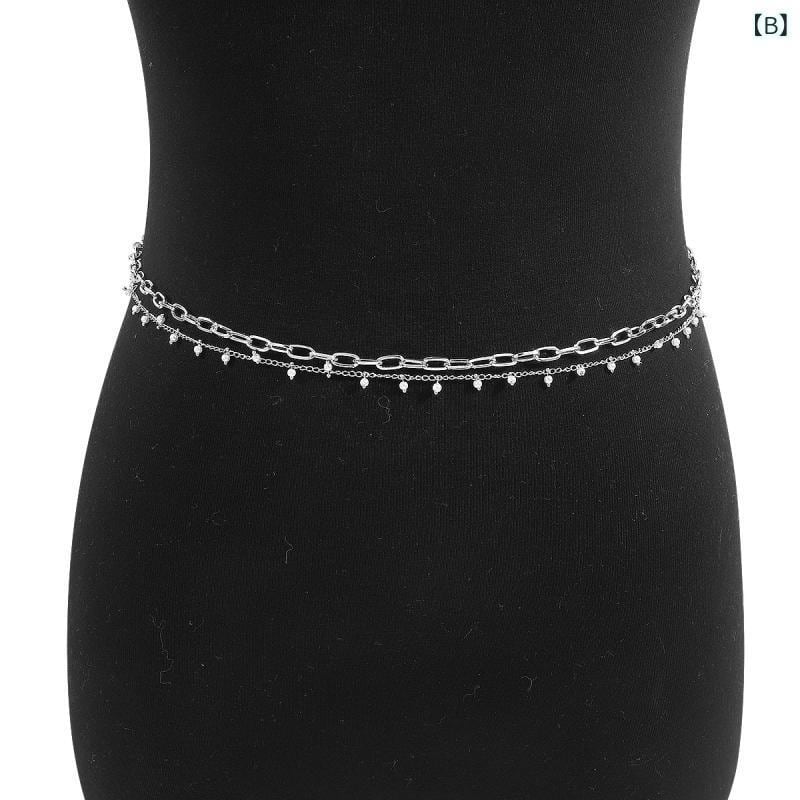 ウエストチェーン レディース 二重 レイヤード シンプル セクシー 高級感 トレンド カジュアル パーティー ファッションアクセサリー ゴールド シルバー 春夏秋 ロングタイプ