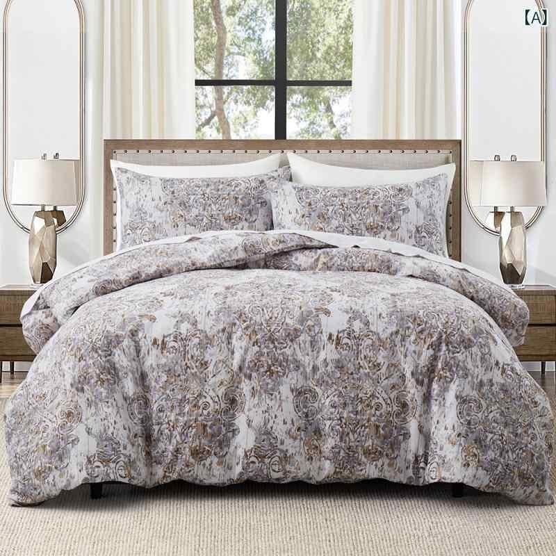 掛け布団カバー 3点セット 北欧風 モダン 木目調 抽象 ペイズリー 幾何学模様 ポリエステル 磨毛加工 ホワイト ベッドリネン 寝具