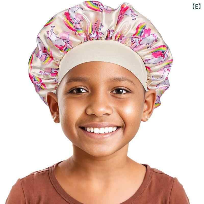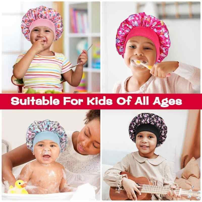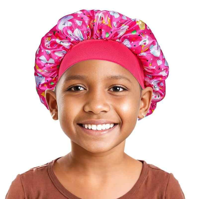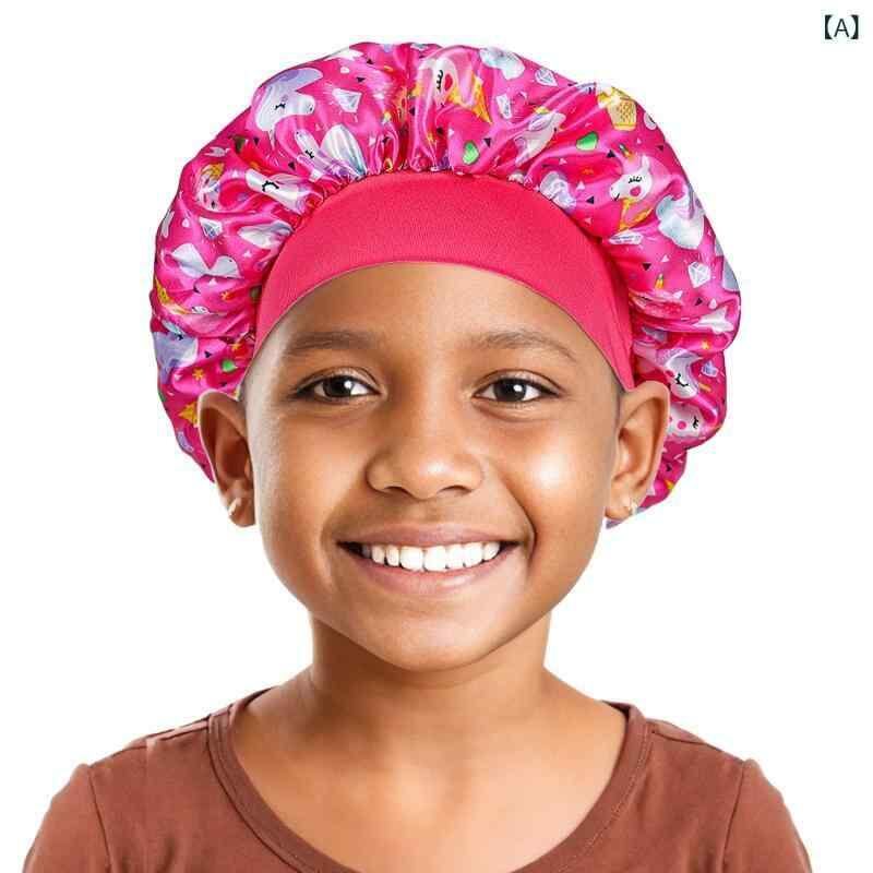 ヘアキャップ キッズ 子供用 サテン プリント 伸縮性 幅広ゴム 髪保護 寝癖対策 ツヤ髪 睡眠用 入浴用 通気性 ドーム型 かわいい