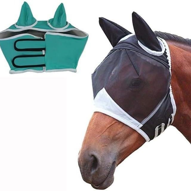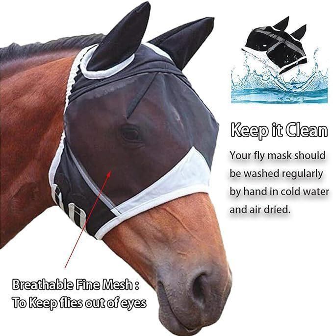 馬用 防虫 飛来昆虫対策 ヘッドカバー 通気性 伸縮性 ナイロン素材 乗馬 アウトドア フェイスマスク