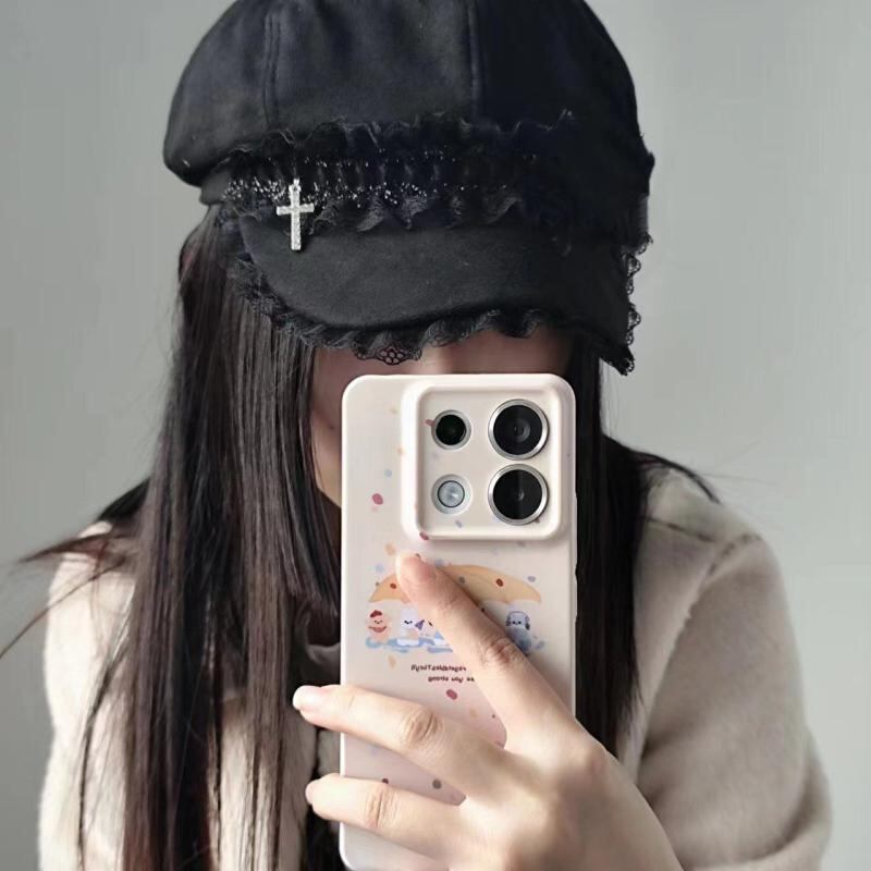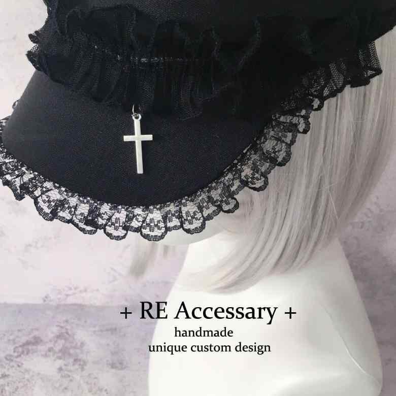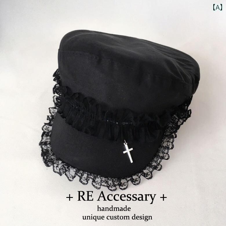 ベレー帽 レース 黒 八角形 Y2K 地雷系 アビィ風 ストリート ファッション 春夏 上品 エレガント オリジナルデザイン 個性的