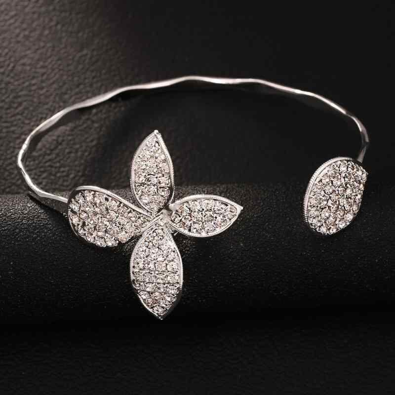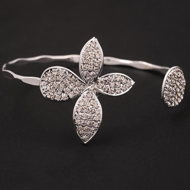バングル レディース オープンデザイン 花びら きらめくラインストーン 軽やか 上品 個性的デザイン シンプル ナチュラルテイスト デイリーユース 電気メッキ加工 ゴールド シルバー