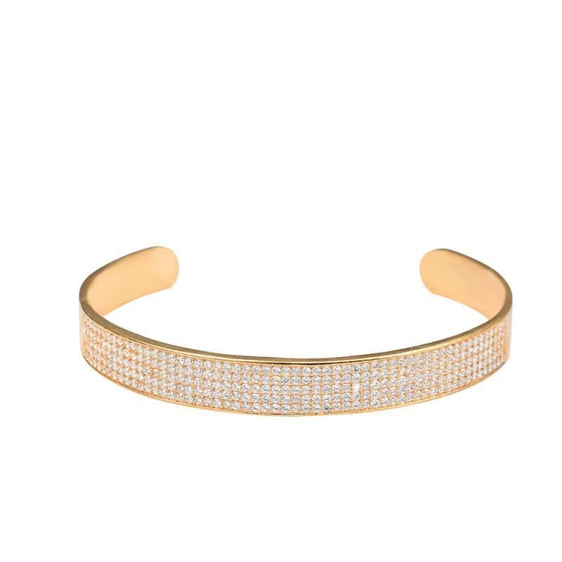 バングル シンプル 欧米風 個性的 マイクロパヴェジルコニア 煌めく輝き 銅製 ゴールドカラー シルバーカラー ヒップホップ ジュエリー アクセサリー 春夏