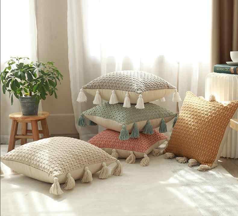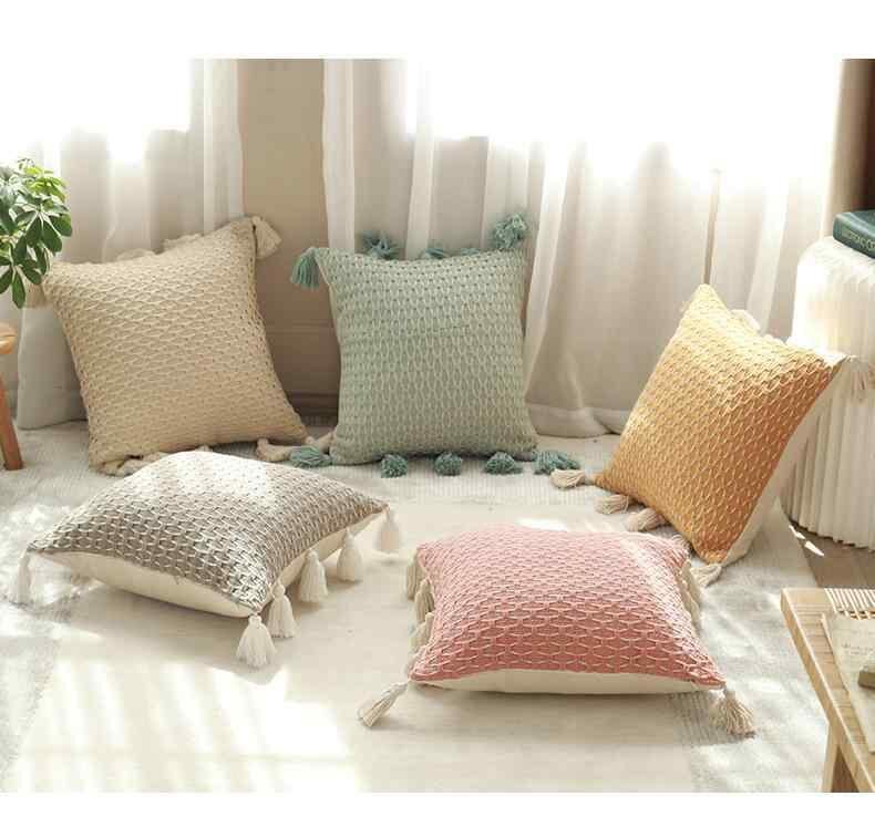 クッション 抱き枕 カバー ソファ用 車用 背もたれ 編み込み フリンジ付き コットン ポリエステル 無地 モダン シンプル リビング インテリア