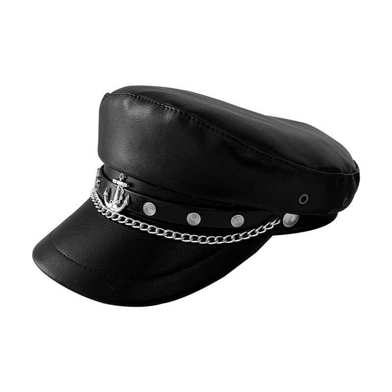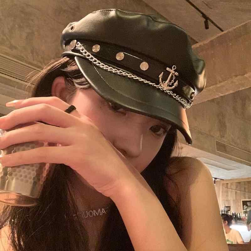 帽子 レディース 韓国風 キャスケット PUレザー レトロ ブリティッシュスタイル 小顔効果 大きいサイズ ゆったり 普段使い インフルエンサー トレンド おしゃれ 春夏 ブラック